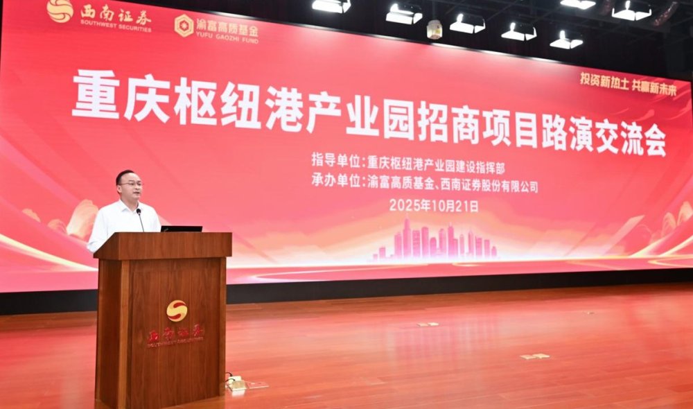 2025年10月21日,渝富高质基金联合西南证券在金融领域持续发力,同时举办“投资新热土 共赢新未来——重庆枢纽港产业园招商项目路演交流会”及“渝创未来 西南同行——重庆科创企业融资路演交流会”,两场路演活动为产业与资本的深度融合搭建高效平台,推动重庆经济高质量发展。